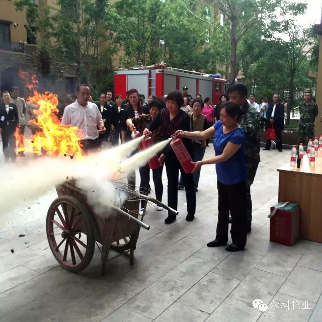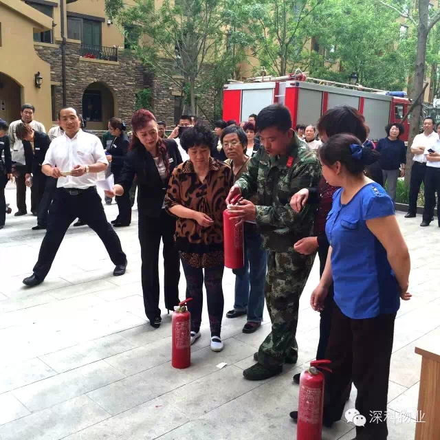 最后消防支队消防员为大家讲解了小区火灾的预防,如何正确用火、用电、用气、初期火灾的扑救方法以及灭火器、灭火水枪的正确使用等消防知识,物业人员、小区居民轮流上前学习使用灭火器灭火。演练每个环节都在紧张、有序的进行,使大家明确了演练的目的和程序,掌握了基本的消防安全知识,熟悉了如何逃生撤离。消防支队还为现场的居民发放消防安全宣传单进行义务宣传,现场互动场面很是热闹。小区居民对于此次消防演练也给予了高度评价:物业服务工作做的非常到位,处处为业主着想。6-1-1305李阿姨对物业员工说:“深科物业,真的很棒,你们辛苦了!”