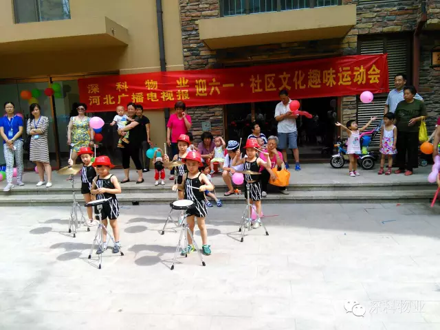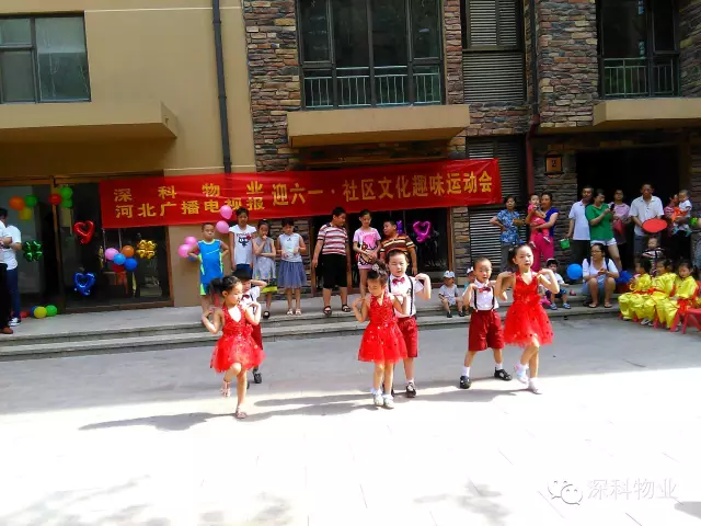 上午八点左右,小区居民开始陆续到达现场,场面十分热闹。参加此次迎“六一”社区文化趣味运动会的业主和小朋友有近500多人,上午九点钟活动正式开始,幼儿园的宝贝们为观众带来了中国武术表演《嘿嘿哈哈》、儿童情景剧舞蹈《坐火车的小老鼠》、器乐合奏《斗牛士之歌》、以及手语表演《最美的光》等精彩节目,温馨的歌声,优美的舞蹈,不仅让大家领教了孩子们的多才多艺,更让大家在欢笑之余感受到了夏日里的阵阵热情,台下的叔叔阿姨爷爷奶奶更是掌声不断。中间还让现场的叔叔阿姨及小朋友们参与了小游戏,物业准备了免费发放礼品等,现场互动场面十分热闹。家长和孩子共同享受着快乐时光,家长们纷纷表示这次活动形式活泼、参与性强,让孩子们度过了欢乐的一天,不仅使小朋友锻炼了身体、增强了体质、体验到与亲人一起游戏的快乐,增进了小朋友身心健康和谐发展;尤其是社区小主人活动,业主给予了高度评价,称“深科物业组织的这次活动非常有意义,平时孩子们对小区情况不是很关心,也不了解,通过这次活动,知道了物业工作人员为维护小区、建设小区所付出的辛劳,使得孩子们非常珍惜和爱护自己的家园,热爱祖国,并且让孩子们体会到自己也是社区的小主人,锻炼了孩子们的胆识,也让我们这些大孩子们找到了年轻的感觉,享受了一回儿童的乐趣,非常感谢深科物业,感谢石总所带领的管理人员,你们是最棒的,希望物业多多举办这样的活动。
