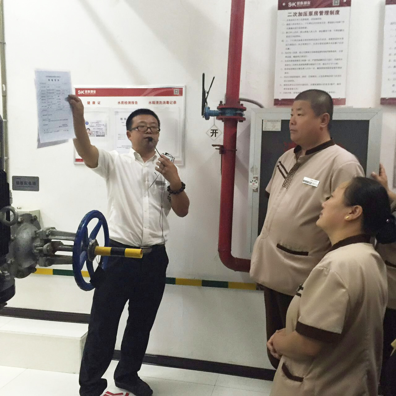 在物业管理过程中,设备设施的管理是很重要的部分,如同每一个人的心脏部位,它承载着整个小区的正常运行,为了让所有员工了解设备设施管理的重要性,8月9日,深科物业红珊湾项目部组织员工参观设备机房,让每位员工更深入的了解各类设备设施的运行、维修和保养是如何进行的。