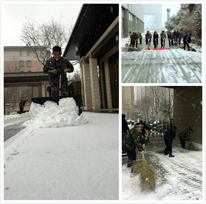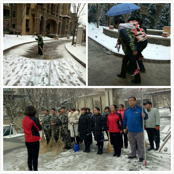 景致不可多得的同时,给广大业主的出行带来了不便,尤其是老年人极容易摔跤,为了保障业主的安全出行,在雪还在洋洋洒洒的同时,公司所辖的各项目部员工在项目经理的带领下着手开始扫雪,确保园区内各主干路内的行人及车辆畅通无阻,给业主带来的影响降至最低。