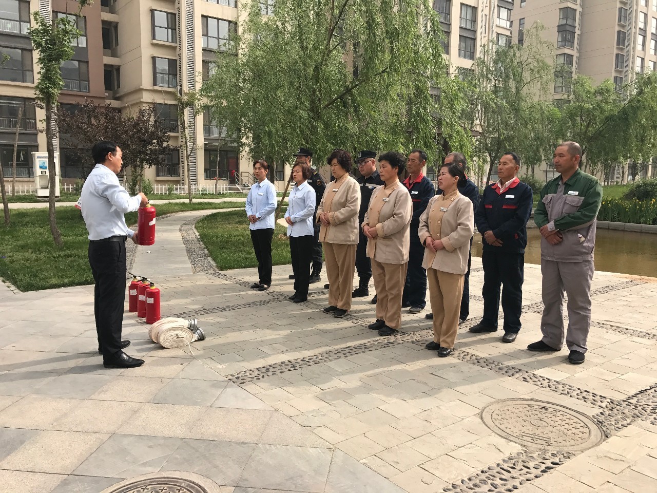 今年上半年各项目均组织了消防演练工作,各项目全体员工积极参与,热情高涨。随着警报声响起,按照设定的灾情,从安防室发现火情到指挥组现场指挥,救护组救助居民有序撤离火场,消防组及时到达火场将火情控制并救助“伤员”,由于参加演习活动人员行动迅速,各部门协同作战,默契配合,成功的完成了消防演练。