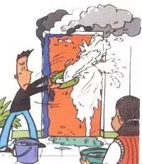 7、室外着火,千万不要开门,以防大火蹿入室内,要用浸湿的被褥,衣物等堵塞门窗缝,并泼水降温。