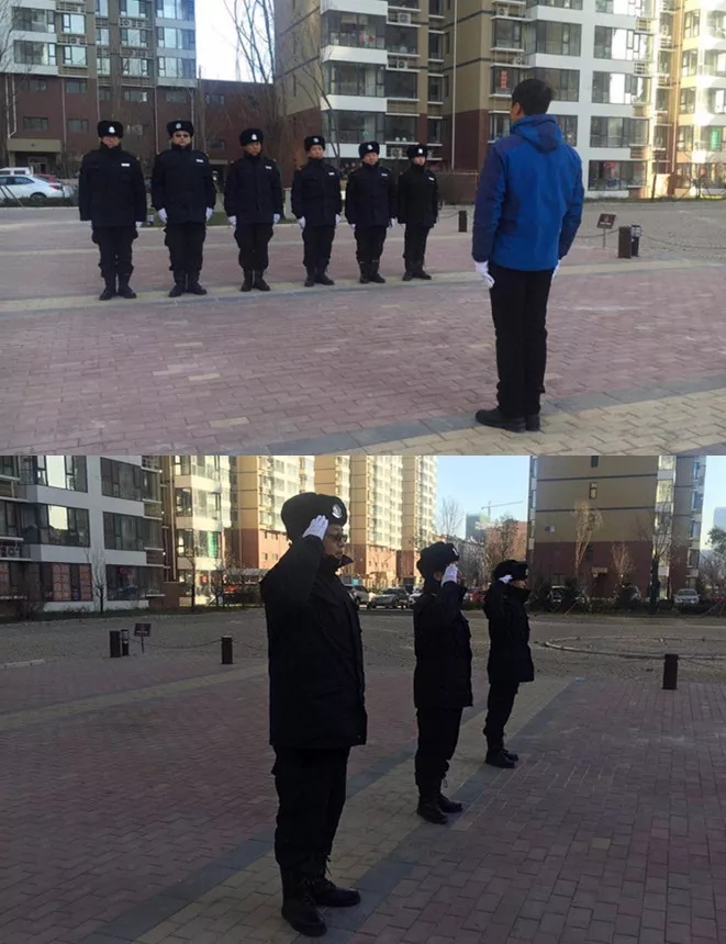 上午九点,对标交流会正式开始,留村项目部三个区维护部依次展示整队、整理着装、敬礼、跨立、停止间转法、齐步走、交接班等一系列日常工作基本动作,现场维护员个个精神抖擞,动作整齐划一,得到了现场领导及业主们的一致好评和阵阵掌声。