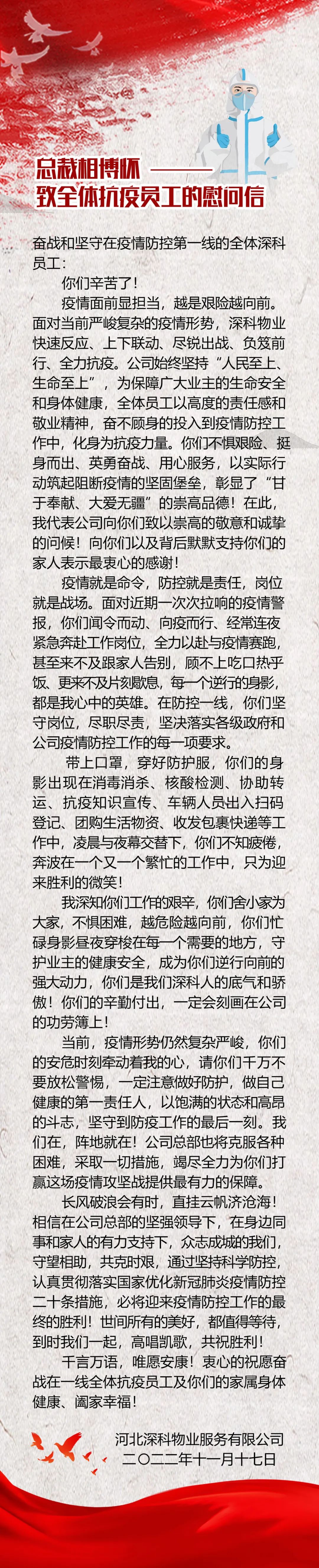 【深科家SENCO+】致全体抗疫员工的慰问信