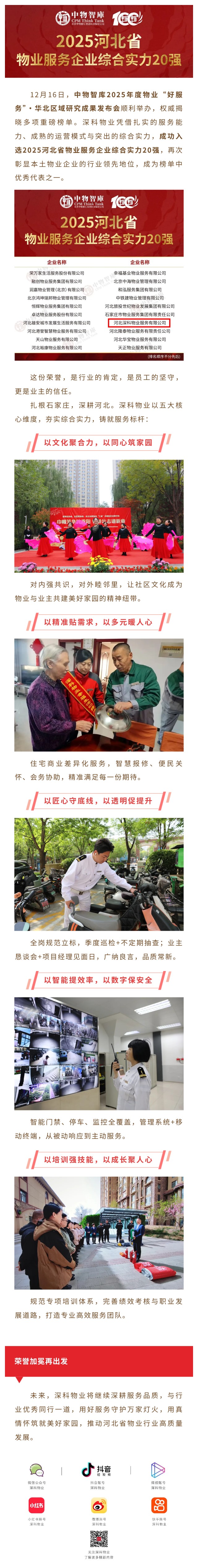 【深科家SENCO+】喜报!深科物业荣登2025河北物业综合实力20强榜单 践行好服务承诺